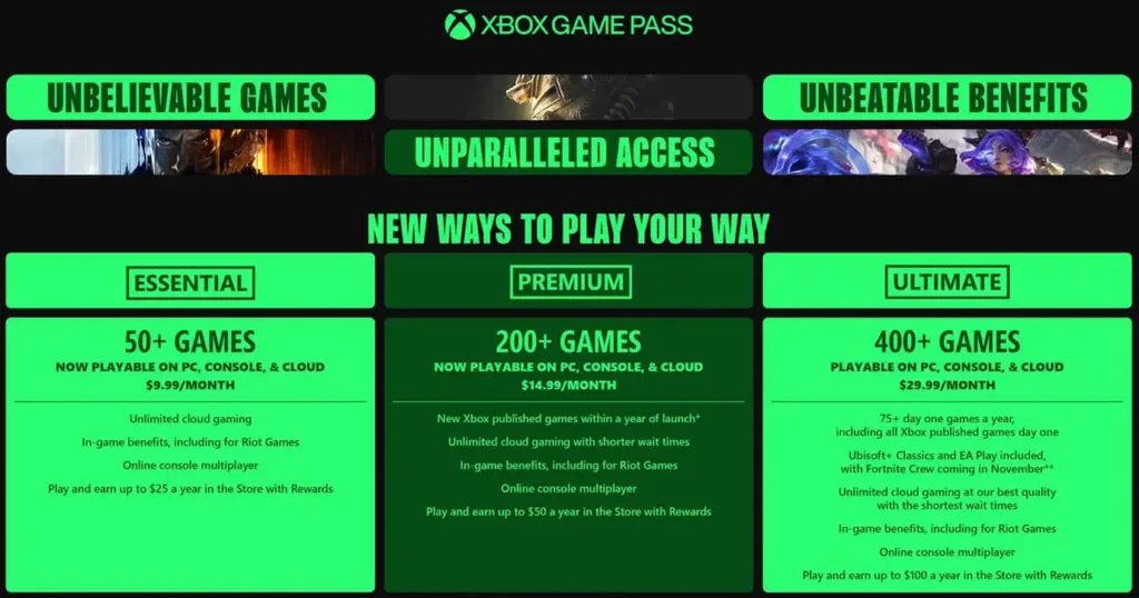– **Xbox Game Pass Ultimate**: el precio ha aumentado de 299 pesos al mes a 449 pesos al mes, lo que representa un incremento de 150 pesos.